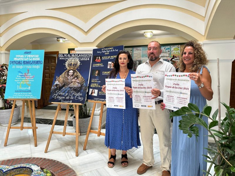 La Asociación de Comerciantes y Empresarios de Benalmádena (ACEB), convoca el Concurso de Decoración de Establecimientos Feria Virgen de la Cruz 2024, que repartirá 1.000 euros en premios, con la colaboración del Ayuntamiento de Benalmádena. La presidenta de la ACEB, Rosa María González Rubia, ha presentado hoy el concurso junto con el concejal de Comercio, Raúl Campos, y la concejala de Festejos, Yolanda Peña.
