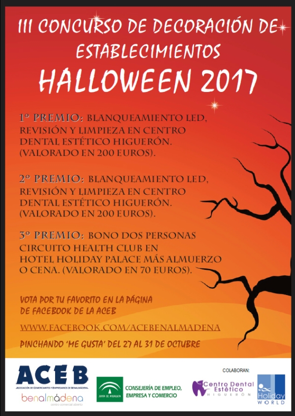 Un total de 58 establecimientos de Benalmádena, de diferentes sectores, ofrecerán descuentos de entre el 20 y el 30 por ciento durante la tercera edición del ‘Viernes del Terror’, el próximo 27 de octubre. Durante todo el día, los clientes podrán disfrutar de estos descuentos dentro de las actividades de dinamización del comercio en otoño que organiza la Asociación de Comerciantes y Empresarios de Benalmádena (ACEB) con la colaboración de la Asociación Centro Comercial Abierto de Benalmádena (ACCAB) y la financiación de la Consejería de Empleo, Empresa y Comercio de la Junta de Andalucía.