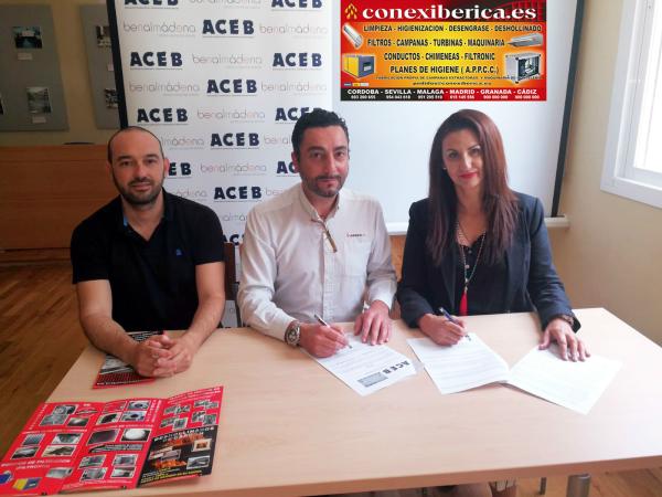 La ACEB y la empresa Conexibérica han firmado un convenio de colaboración por el se ofrece a los socios de la ACEB un 25% de descuento en los siguientes productos y servicios: limpieza, deshollinado y desengrase en campana extractora, conducto, turbina extractora, higienización de cocinas industriales y maquinaria para cocinas industriales.