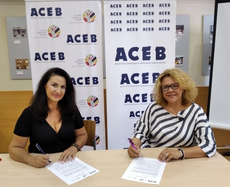 La presidenta de ACEB y vicepresidenta de ACCAB, Rosa María González Rubia, y la gerente de Consulting Empresarial Benalmádena, María del Carmen Peláez, han suscrito el convenio que se extenderá hasta septiembre de 2022.