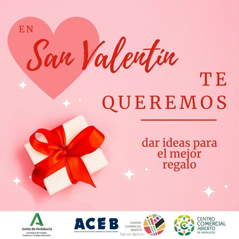 La Asociación Centro Comercial Abierto de Benalmádena (ACCAB), con la colaboración de la Asociación de Comerciantes y Empresarios de Benalmádena (ACEB) y la Consejería de Empleo, Empresa y Trabajo Autónomo de la Junta de Andalucía, pone en marcha la campaña especial de San Valentín, que este año recoge las mejores propuestas de regalo de los establecimientos de cercanía. Con el lema “En San Valentín te queremos… dar las mejoras ideas de regalo”, esta promoción incluye todos los establecimientos que han trasladado sus propuestas para estas fechas, un listado que se puede consultar en una sección especial de San Valentín del portal Benalmercado: https://benalmercado.com/categoria/san-valentin/.