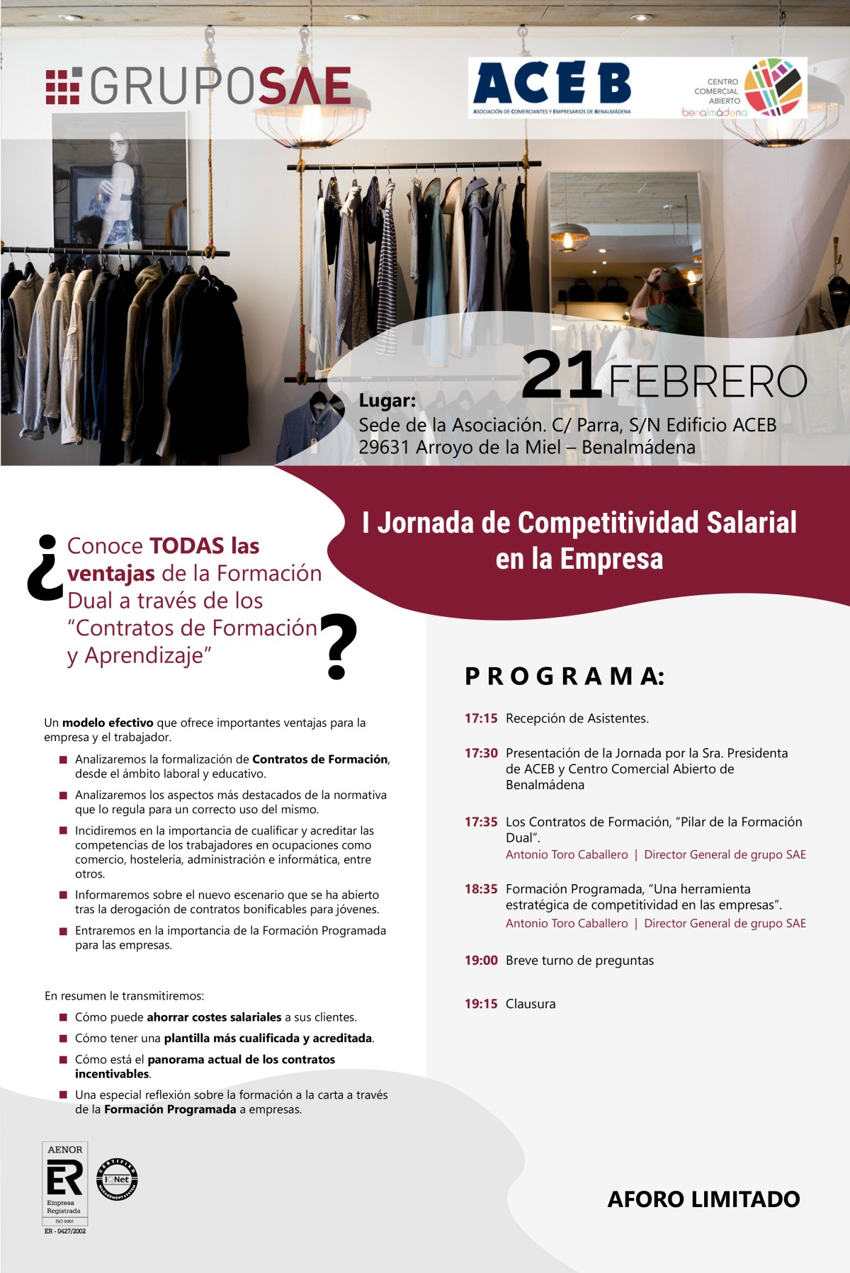 I JORNADA COMPETITIVIDAD SALARIAL EN LA EMPRESA Noticias I JORNADA COMPETITIVIDAD SALARIAL EN LA EMPRESA Aforo limitado. Las reservas de plazas se pueden formalizar en el mail info@portalaceb.es o llamando al 952 44 04 05. Pulsar para ampliar About administrador View all posts by administrador →