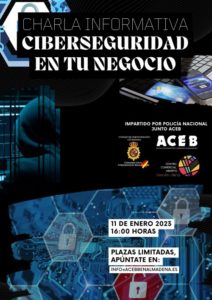 La sede de la Asociación de Comerciantes y Empresarios de Benalmádena (ACEB) y de la Asociación Centro Comercial Abierto de Benalmádena (ACCAB) acogerá el próximo 11 de enero a las 16:00 horas, una charla con consejos e información sobre ciberseguridad en los negocios y establecimientos, que será ofrecida por la Unidad de Participación Ciudadana de la Comisaría de Policía Nacional de Benalmádena-Torremolinos.