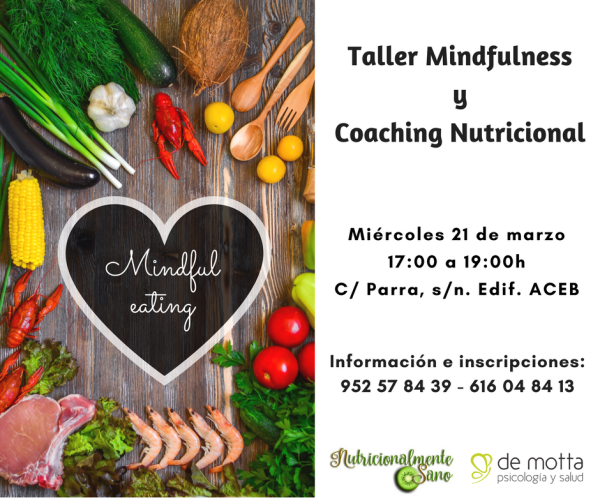 El miércoles 21 de marzo, en la sede de la ACEB, "De Motta Psicología y Salud " realizará un Taller de Nutrición destinado a aquellas personas que deseen llevar una alimentación más saludable o bajar de peso. En él aprenderás a centrar tu atención, a distinguir qué hambre sientes durante el día y a disfrutar de la comida con los cinco sentidos. También aprenderás a relajarte y a dedicarte un tiempo a ti, transformando la alimentación en un proceso consciente y placentero.